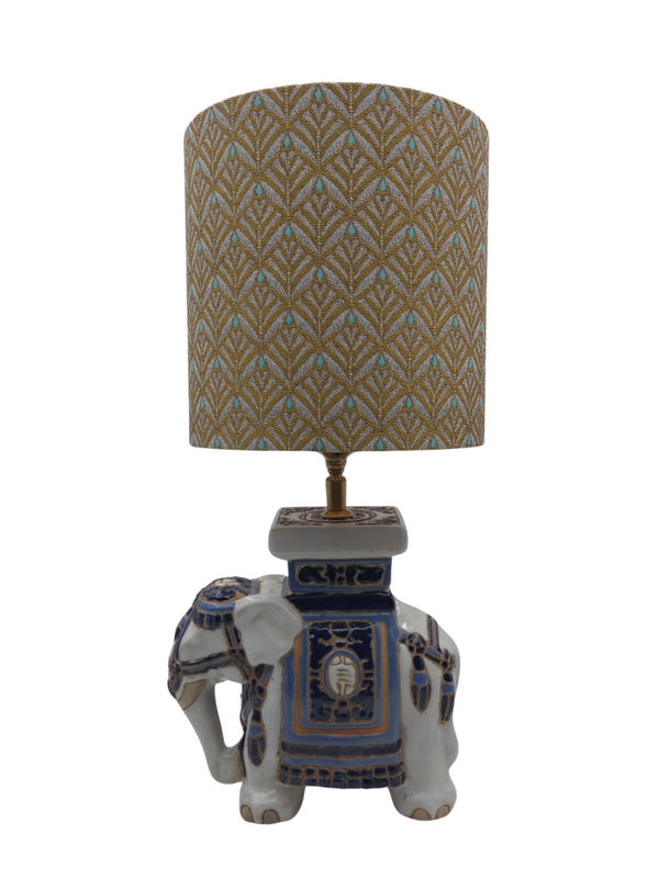 Deze prachtige lamp is gemaakt van een vintage olifanten plantenstandaard. De voet heeft een hoogte van 21cm (tot aan fitting), is 21cm breed en afgewerkt met een goudkleurige E27 fitting en een snoer met schakelaar