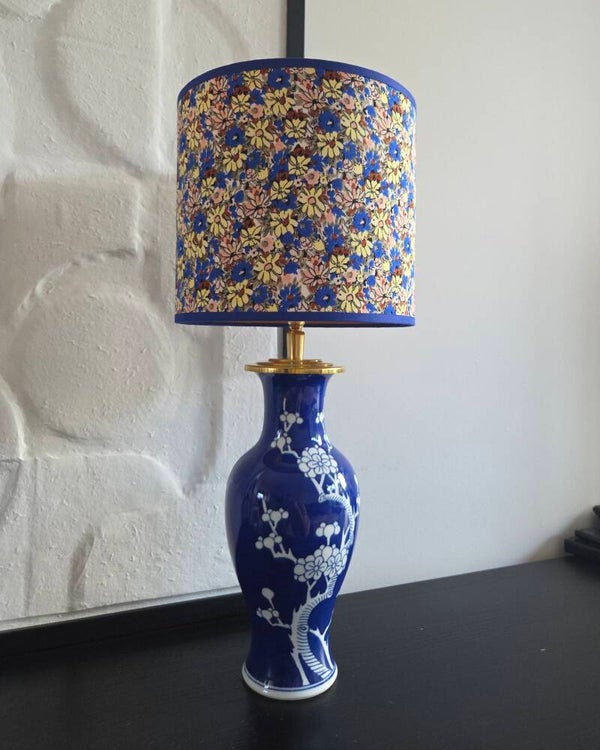 Handgemaakte lampenkap met Blauw Bloemenprint - Ø20cm